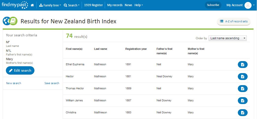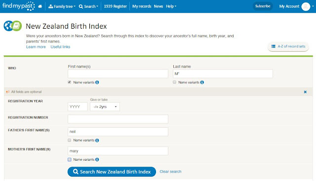 With the search on the NZ BDM website I could only search the births with a mother's name, now I can search with a father's name.