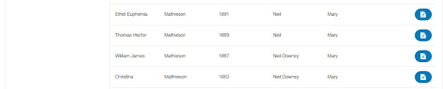 74 results this time and the extra child of Hector Mathieson (named for his grandfather). From what I know about the family I'm actually surprised to see this registration as I believe he was born in June and his parents married in August.