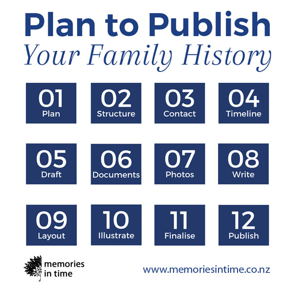 Plan to Publish - Your Family History is a 12 step programme to take you on a journey from planning to publishing a family history book.
