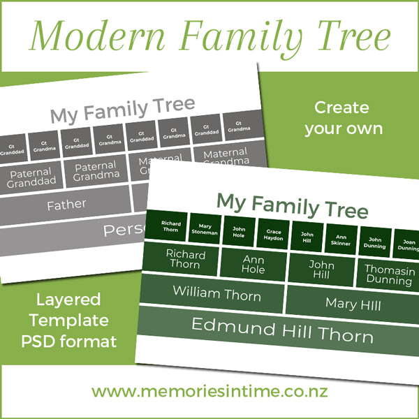 If you would like to know how to create a Modern Family Tree, using this template, we have a workshop (online webinar) taking you step by step through the creation of your family tree (the template is included with the webinar). Click on the link to purchase the Modern Family Tree Workshop.